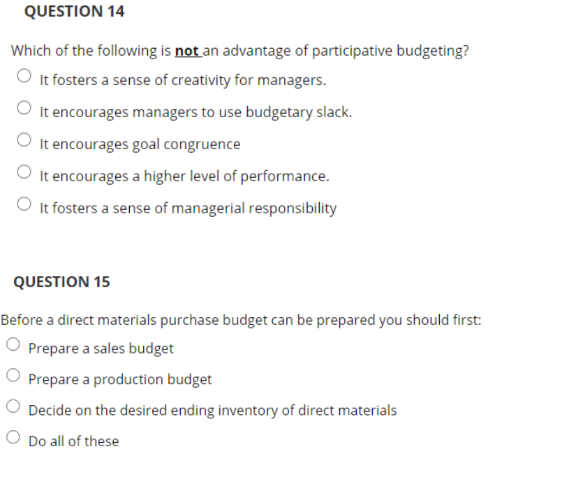Solved Which Of The Following Is A Benefit Of Participative Chegg Com